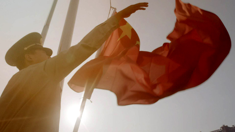 上午8時(shí),升旗儀式正式開始。伴隨著雄壯的國歌,鮮艷的五星紅旗冉冉升起。大家莊嚴(yán)肅立,高唱國歌,懷著對祖國的熱愛與祝福向國旗行注目禮,共同祝福偉大的祖國繁榮昌盛。