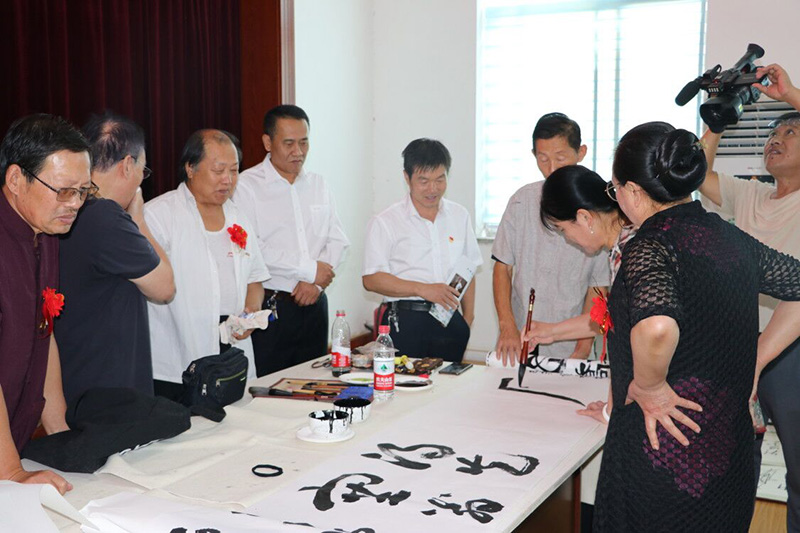 書畫展還邀請到了河北省毛體書法家協(xié)會主席韓振英、素有“毛澤東的手”之稱的演員王山城和多位省毛體書法家協(xié)會副主席前來參加。在展覽現(xiàn)場,書法家們還現(xiàn)場揮毫潑墨,進行了創(chuàng)作交流。