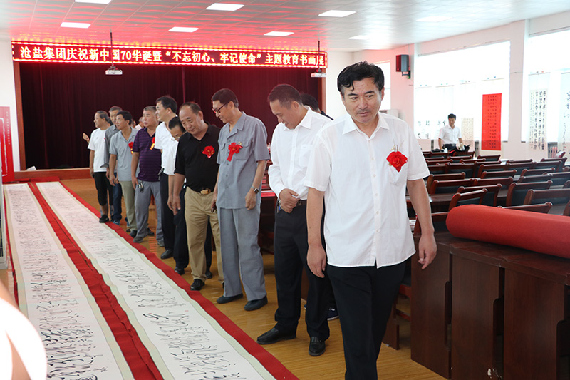 9月29日,公司黨委舉辦了慶祝新中國70華誕暨“不忘初心、牢記使命”主題教育書畫展。來自河北省各地的毛體書法愛好者齊聚一堂,揮毫潑墨寫下對新中國的祝福,還共同在百米長卷上留下墨寶,合力推動滄鹽企業(yè)文化發(fā)展。