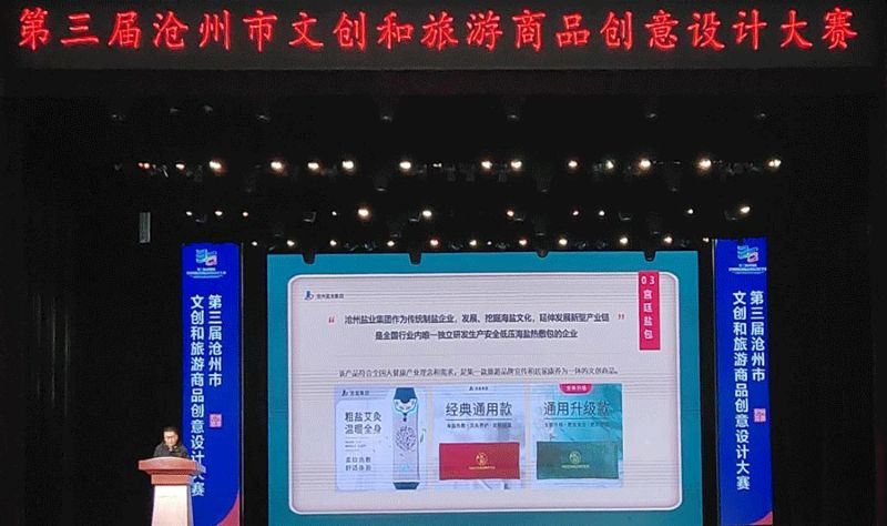 12月2日,第三屆滄州市文創(chuàng)和旅游商品創(chuàng)意設(shè)計大賽路演暨頒獎典禮在滄州文化藝術(shù)中心舉行!皽纣}”牌海鹽熱敷包(宮廷款)榮獲銀獎。