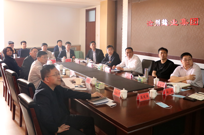湖南鹽業(yè)雪天科技董事長陳新、湘恒鹽化副總經(jīng)理趙昌武,公司領(lǐng)導(dǎo)張立莊、文興峰、李金營、于劍參加了洽談。
