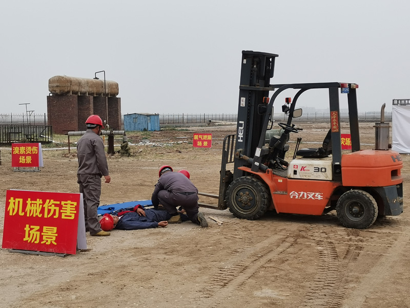 集團(tuán)公司安全環(huán)保部有關(guān)負(fù)責(zé)人到場(chǎng)指導(dǎo),溴素公司30余名職工進(jìn)行了現(xiàn)場(chǎng)觀摩。