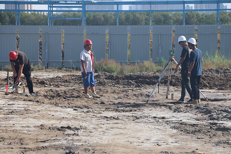 自5月份取得各項(xiàng)施工資質(zhì)后,建筑工程公司便積極參與建筑市場的競爭,并于6月1日與河北啟邦機(jī)械制造有限公司簽訂了大口徑鋁鎂合金螺旋焊管1#檢測(cè)車間的施工合同。為了確保工程順利實(shí)施,建筑工程公司及時(shí)成立了項(xiàng)目籌建部,積極協(xié)助河北啟邦機(jī)械制造有限公司跑辦施工許可證,溝通工程相關(guān)事宜,并提前做好了路面硬化、項(xiàng)目部設(shè)置、防疫等工作。施工許可證辦結(jié)后,9月4日,安全、質(zhì)檢、測(cè)量等人員正式入駐施工現(xiàn)場,拉開了工程建設(shè)序幕。截至9月8日,已完成放線和打樁工作。目前,測(cè)量人員正在對(duì)因樁機(jī)震動(dòng)造成放線點(diǎn)位的可能誤差進(jìn)行復(fù)線矯正,待復(fù)線完工后,將依次進(jìn)行開槽、基礎(chǔ)施工和鋼結(jié)構(gòu)施工。預(yù)計(jì)11月15日前完成全部工程施工。