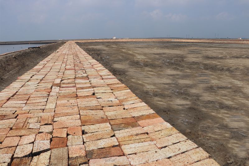 為了確保工程如期完工,長蘆公司全體干部職工放棄節(jié)假日休息,克服施工期間降雪、大風(fēng)降溫等極寒天氣影響,加班加點、全力以赴趕進度,于2021年1月11日,順利完成了14個技改保鹵池共1184公畝的機械成埝,人工護磚工作。在施工期間,因環(huán)保要求,紅磚進場工作幾度停止。工貿(mào)公司積極協(xié)調(diào)供貨方,根據(jù)每個施工現(xiàn)場工程進度,合理調(diào)配用磚;生產(chǎn)部嚴把工程質(zhì)量,加大巡查力度,發(fā)現(xiàn)問題及時解決;安全部對施工現(xiàn)場設(shè)備、人員及時進行檢查、培訓(xùn),確保了施工安全。