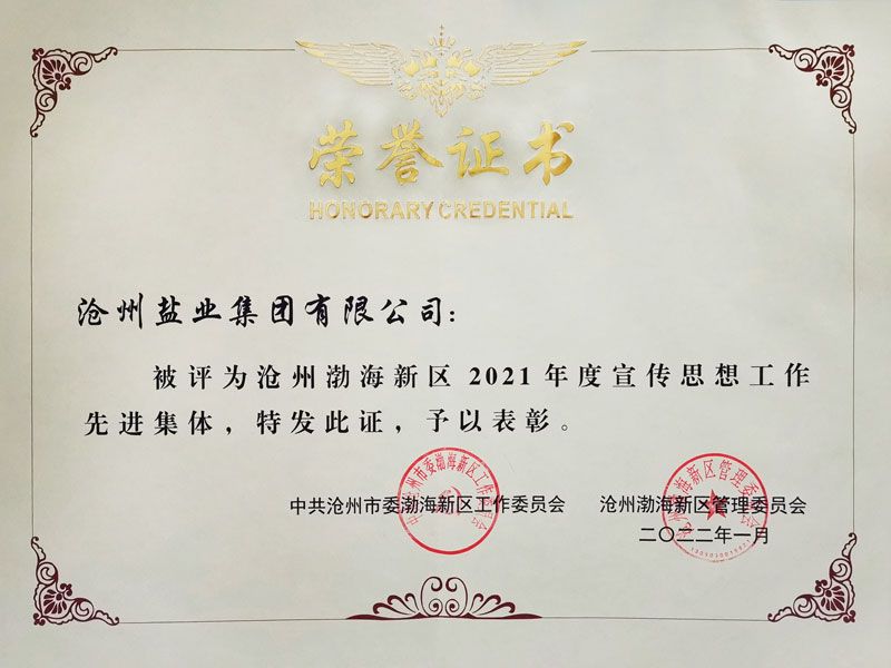 2月17日,在渤海新區(qū)宣傳工作會議上,我公司榮獲“2021年度宣傳思想工作先進(jìn)集體”榮譽稱號并受到表彰。