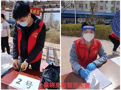 居家辦公的共產(chǎn)黨員陳玲、李國剛夫婦,主動(dòng)申請(qǐng)加入鹽場新區(qū)志愿服務(wù)隊(duì),兩人相互鼓勵(lì),并肩作戰(zhàn),積極配合醫(yī)務(wù)人員、社區(qū)工作人員做好信息核實(shí)登記、現(xiàn)場布置、發(fā)動(dòng)喊人、維持秩序、場地消毒、深夜照明等項(xiàng)工作,并主動(dòng)提供桌椅板凳以供檢測使用。