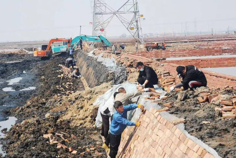 2022年4月8日,是渤海新區(qū)港城區(qū)結(jié)束疫情封控的第二天,物流公司承接的長蘆公司的保鹵圈技改工程也在這一天勝利竣工。物流公司全體人員看到又一項(xiàng)工程完工,黝黑的臉上綻放出勝利的笑容,工程也得到了長蘆公司各級(jí)部門的一致好評(píng)。為加快長蘆鹽業(yè)保鹵圈技改工程、保證鹵水正常調(diào)配,物流公司包括機(jī)關(guān)后勤人員在內(nèi)的全體人員自愿封控在場區(qū),全身心投入到長蘆公司灘田技改“會(huì)戰(zhàn)”中,經(jīng)過連續(xù)8天的努力,共砌磚6.5萬塊,如期完成了78號(hào)、80號(hào)灘保鹵圈技改任務(wù)。