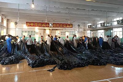 為搶在6月27日強降雨到來前完成青鋒公司四個技改保鹵圈的鹽膜安裝工程,工貿(mào)公司全體干部職工放棄節(jié)假日,冒酷暑、搶工期、趕任務(wù),全力突擊收放機設(shè)備制造安裝和鹽膜加工任務(wù)。