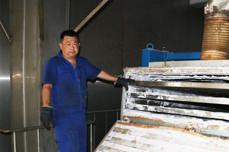 篩選機(jī)是食鹽生產(chǎn)的關(guān)鍵設(shè)備。于春來結(jié)合搖擺篩進(jìn)料及篩分效果低下等癥結(jié),反復(fù)測試調(diào)整,利用自己多年來的工作經(jīng)驗,將搖擺篩進(jìn)口尺寸調(diào)整、加寬,使篩分效果明顯增強(qiáng),既提高了工作效率又提升了篩分質(zhì)量。同時,于春來又將搖擺篩固定篩網(wǎng)改裝成為可單獨(dú)更換型,避免了篩網(wǎng)破損造成搖擺篩整體更換的材料浪費(fèi),僅此一項,年節(jié)省費(fèi)用2萬余元。