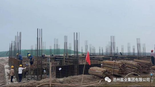 建筑工程公司立足公司內(nèi)部,積極承攬外部施工,開拓外部市場,成功承接了滄州建新瑞祥化學(xué)科技有限公司—建新化工中控室項(xiàng)目建設(shè)工作。該項(xiàng)目建筑面積2434.3㎡,總造價563萬元,7月21日正式開槽作業(yè),并于7月29日凌晨,趕在臺風(fēng)“杜蘇芮”到來前完成基礎(chǔ)筏板800余立方米混凝土的澆筑工作,再一次體現(xiàn)了“滄鹽速度”。