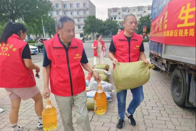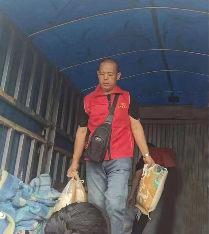 7月29日早晨5時(shí),張?jiān)驍y妻兒與所屬的渤海新區(qū)黃驊市港城區(qū)春暉志愿者團(tuán)隊(duì)聯(lián)合渤海新區(qū)黃驊市紅色朝陽(yáng)志愿者團(tuán)隊(duì),共計(jì)50余人驅(qū)車四百多公里前往保定淶源愛(ài)心互助家園,為當(dāng)?shù)毓鹿牙先思皟和腿チ艘路、被子、鞋、米、油、書包、筆等生活、學(xué)習(xí)物資必需物品。這是張?jiān)蛉业谌稳Z源山區(qū)進(jìn)行志愿服務(wù)。