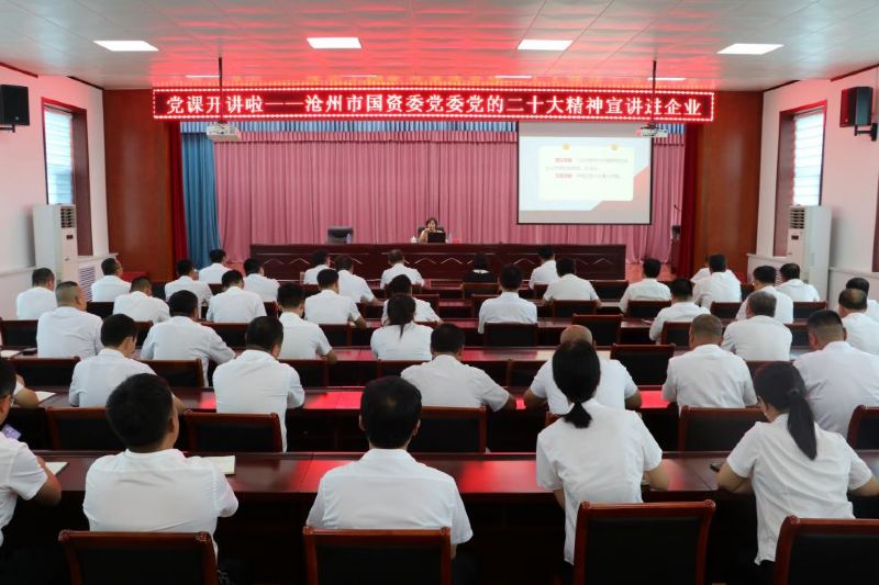 為深入學習貫徹落實黨的二十大精神,8月18日,滄州市國資委黨委特邀滄州市委“走基層”宣講團講師、滄州市委黨校黨史黨建教研室副主任苗玲玲副教授在滄州市國資委黨建科科長劉倩的陪同下,來我公司進行黨的二十大精神進企業(yè)宣講。集團公司在家領導,基層各單位黨總支、黨支部書記,機關黨群部門的負責同志及部分黨員代表60余人參加了宣講報告會。宣講報告會由黨委副書記王化池主持。
