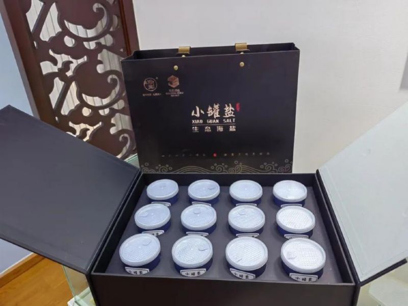 據(jù)了解,“小罐鹽”嚴(yán)格按照《生態(tài)海鹽評(píng)價(jià)技術(shù)規(guī)范》標(biāo)準(zhǔn)生產(chǎn),堅(jiān)持不添加任何化學(xué)成分,確保產(chǎn)品的天然性和安全性,是符合“綠色”發(fā)展理念的優(yōu)質(zhì)生態(tài)海鹽!靶」摞}”為禮盒設(shè)計(jì),禮盒內(nèi)小罐鹽從一月至十二月整齊排列,每罐均印有“生態(tài)海鹽”標(biāo)識(shí),配有手提袋,包裝大氣、美觀,是集饋贈(zèng)親朋和廚房必備為一體的高端實(shí)用商品。