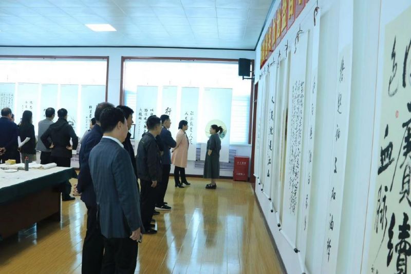 此次書畫展以習(xí)近平總書記的金句語錄和黨的二十大報告中的重要論述為主要內(nèi)容,以傳承和弘揚(yáng)中國傳統(tǒng)書畫藝術(shù)為手段,以筆抒懷,用筆抒情,共計收到在職干部職工、退休干部職工作品40余幅,經(jīng)過嚴(yán)格篩選,共有28幅作品參加展覽。開展當(dāng)日,吸引了100多名干部職工參觀學(xué)習(xí),部分書畫愛好者還現(xiàn)場揮毫潑墨,與干部職工共同交流創(chuàng)作心得。