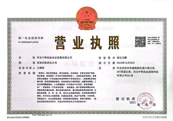 2023年12月29日,河北中鐵滄鹽木業(yè)發(fā)展有限公司注冊成立,標(biāo)志著滄鹽集團引入央企三級子公司正式落地,華北進口木材產(chǎn)業(yè)園建設(shè)正式拉開序幕。