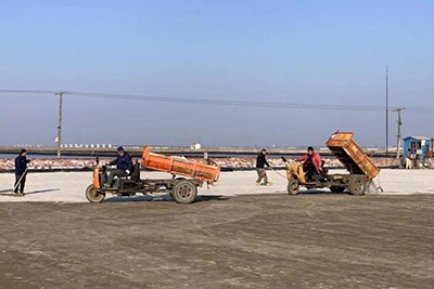 節(jié)日期間,班子成員帶頭堅守崗位值班值守,同時做好所屬各單位的工作督查。各制鹽單位抓住春節(jié)期間氣溫上升的有利時機廣聚鹵源多制鹵,扎實做好結(jié)晶池活碴、邊角污染物處理,潑水滅塵等工作,做好越冬結(jié)晶池晾曬處理。2月6日至16日,長蘆公司共晾曬處理越冬結(jié)晶池1.3萬公畝,換新鹵結(jié)晶面積占正在結(jié)晶面積的52%以上,提前進入春曬狀態(tài)的同時為應對下步天氣過程做好了充足準備。部分生產(chǎn)單元還根據(jù)鹵水存量,適時拖泥、晾池、軋實、撒鹽種、量鹵灌池,做好冬灌工作,增加結(jié)晶面積,至2月16日,新增結(jié)晶面積547.7公畝。