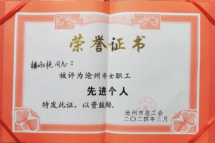 獲獎(jiǎng)職工分別接受了滄州市總工會和黃驊市婦聯(lián)的表彰。