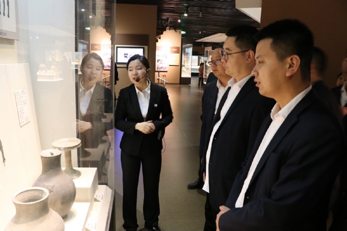 在博物館大廳,全體團(tuán)員舉行了重溫入團(tuán)誓詞儀式。隨后,在講解員的帶領(lǐng)下依次參觀了滄州歷史文化陳列、滄州民俗文化展、滄州中醫(yī)藥文化展和滄州歷史名人展等諸多展館。展館內(nèi)一件件珍貴的展品、一幅幅時代的畫面,猶如一篇篇波瀾壯闊的歷史詩篇,展示了滄州地方發(fā)展脈絡(luò),展現(xiàn)了滄州歷史文化面貌,團(tuán)員青年們切身感受到“河海相濟(jì)、文武滄州”的獨特魅力。