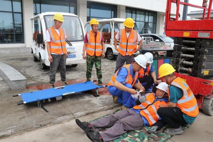隨著警報響起,各部門迅速行動。疏散組有條不紊地引導員工有序撤離危險區(qū)域;搶險組第一時間攜帶專業(yè)設備沖向“事故現(xiàn)場”,進行滅火和搶險作業(yè);醫(yī)療組則以最快速度對“受傷人員”進行急救處理并轉運。