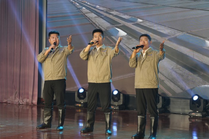 聯(lián)歡會在黃驊市紅色朝陽戰(zhàn)鼓隊演奏的鼓舞《紅紅火火》中拉開序幕,迅速點燃現(xiàn)場氣氛。隨后的獨唱《等待》、情景劇《穿越時空的對話》、薩克斯表演《鐵血丹心》、舞蹈《萬疆》、手語舞《一起走》、講述性朗誦《履職盡責(zé),做新時代的應(yīng)急奮斗者》、戲曲聯(lián)唱等20個節(jié)目輪番上演。其中男聲小合唱《曬鹽的漢子》書寫著一代代滿腔熱血的滄鹽人在這片百里荒灘上艱苦奮斗、開拓創(chuàng)新的偉大精神,瞬間將活動的氣氛推向高潮;詼諧幽默的三句半《滄鹽新風(fēng)尚有你還有我》展現(xiàn)了滄鹽職工的榮譽感和自豪感,以及對企業(yè)美好未來的期許與祝福;一曲《長蘆戀》迅速將人們拉進30多年前鹽工生產(chǎn)生活的回憶里;滄鹽集團三位國家級、省級、市級勞動模范合唱的《歌唱祖國》更是以飽滿的熱情唱出了對祖國的熱愛;實力唱將楊嵐雅、袁冰,滄州星月藝術(shù)團的精彩表演更是博得了現(xiàn)場觀眾的陣陣掌聲。最后,演出在一首充滿陽光和希望的歌伴舞《陽光路上》落下帷幕。