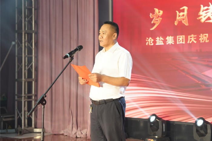 滄州市委宣傳部副部長王超,滄鹽集團黨委書記、董事長劉建軍分別致辭。王超在致辭中充分肯定了滄鹽集團在66年的發(fā)展歷程中取得的成績。他指出,新時代,滄鹽集團要實現(xiàn)高質(zhì)量發(fā)展,必須高度重視思想政治工作,不斷創(chuàng)新思想政治工作的方式方法,提高思想政治工作的實效性。在中華人民共和國成立75周年即將到來之際,慶祝祖國生日的同時,我們要居安思危,強化國防觀念和憂患意識,增強干事創(chuàng)業(yè)的本領(lǐng),團結(jié)一心、拼搏奮進,為實現(xiàn)滄鹽集團的高質(zhì)量發(fā)展而努力奮斗,為建設(shè)經(jīng)濟強市、美麗滄州做出新的更大貢獻。