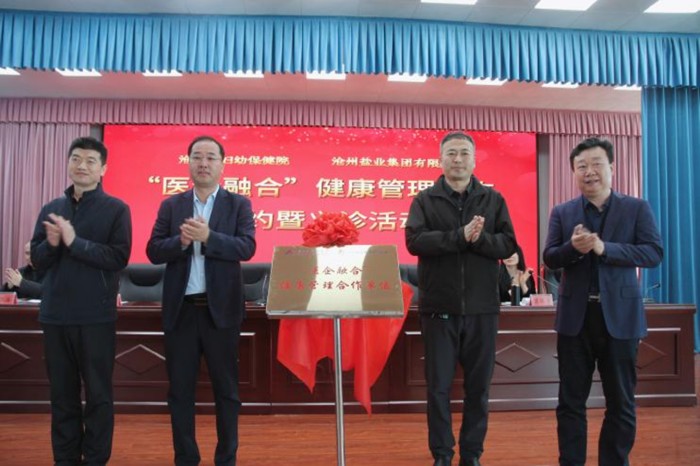 在參會(huì)人員的共同見(jiàn)證下,張立莊、徐聞鉑分別代表滄鹽集團(tuán)、滄州市婦幼保健院簽訂了“醫(yī)企融合”健康管理合作意向書(shū)。張立莊、狄彬、徐聞鉑、崔國(guó)光共同為“醫(yī)企融合”健康管理合作單位揭牌。崔國(guó)芳代表滄鹽集團(tuán)現(xiàn)場(chǎng)接受了滄州市婦幼保健院捐贈(zèng)的1600余張健康服務(wù)卡。
