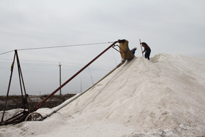 在整個(gè)春曬、春扒生產(chǎn)過程中,持續(xù)晴好的天氣對(duì)原鹽生產(chǎn)十分有利,而且旺產(chǎn)季節(jié)出現(xiàn)了近十年難得一見的“紅五月”,蒸發(fā)量高達(dá)324毫米,有效的促進(jìn)了制鹵和結(jié)晶長鹽。針對(duì)這一有利天時(shí),一線干部職工狠抓公司決策的落實(shí),采取了一系列超常措施:初級(jí)制鹵區(qū)采取搶納高濃度海水,控制外圍用水,合理均衡調(diào)節(jié)鹵水等措施,保證了鹽、化生產(chǎn)有水可用,有鹵可供;制鹽一線以春季原鹽生產(chǎn)勞動(dòng)競(jìng)賽活動(dòng)為契機(jī),夯實(shí)生產(chǎn)基礎(chǔ),鞏固管理成果,開展了卓有成效的生產(chǎn)管理活動(dòng);在春曬整體鹵水實(shí)力不足的情況下,多措并舉,多趕快制,靈活調(diào)度,優(yōu)先滿足結(jié)晶和扒鹽需求;同時(shí)各生產(chǎn)單元合理控制結(jié)晶面積,確保鹵水供需基本平衡,滿足結(jié)晶新、深度和提高產(chǎn)品質(zhì)量,充分利用蒸發(fā)量,爭(zhēng)取多產(chǎn)鹽、產(chǎn)好鹽;扒鹽操作上堅(jiān)持新鹵送鹽,在留茬、除混、分曬和坨碼存放等操作環(huán)節(jié)上精益求精;各級(jí)生產(chǎn)管理部門更是強(qiáng)化對(duì)日常原鹽生產(chǎn)管理工作的督導(dǎo)、檢查,確保了公司整體生產(chǎn)管理工作的細(xì)致性、時(shí)效性和全面性。