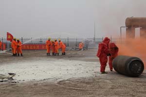 下午2時(shí)30分,應(yīng)急救援演練正式開始。在模擬演練現(xiàn)場(chǎng),演練人員秩序井然,按照演練步驟圓滿完成各項(xiàng)演練科目。演練過程中,現(xiàn)場(chǎng)解說員也隨機(jī)為觀摩人員進(jìn)行了細(xì)致的講解,宣傳了應(yīng)急救援注意事項(xiàng)及相關(guān)應(yīng)急常識(shí),凸顯了演練實(shí)用化效果,F(xiàn)場(chǎng)演練結(jié)束后,舉辦了應(yīng)急演練技能比武活動(dòng),各參賽人員搶時(shí)間,比速度,按照要求正確穿戴空氣呼吸機(jī)和全封閉防化服,充分體現(xiàn)了搶險(xiǎn)突擊隊(duì)員的整體素質(zhì)。整個(gè)演練過程歷時(shí)1小時(shí)30分鐘,既檢驗(yàn)了處置突發(fā)事故的應(yīng)急能力,也發(fā)現(xiàn)了演練實(shí)施過程中出現(xiàn)的問題,為今后的實(shí)戰(zhàn)積累了寶貴的經(jīng)驗(yàn)。