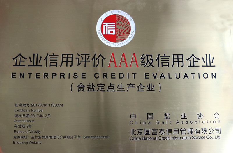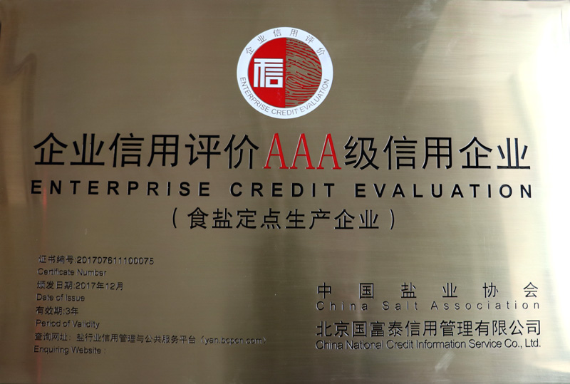 此次評定是經(jīng)第三方專業(yè)評價機(jī)構(gòu)嚴(yán)格評價和中國鹽業(yè)企業(yè)信用等級評價委員會審核,并通過向社會公示無異議,評定出56家AAA級食鹽定點(diǎn)生產(chǎn)企業(yè)。