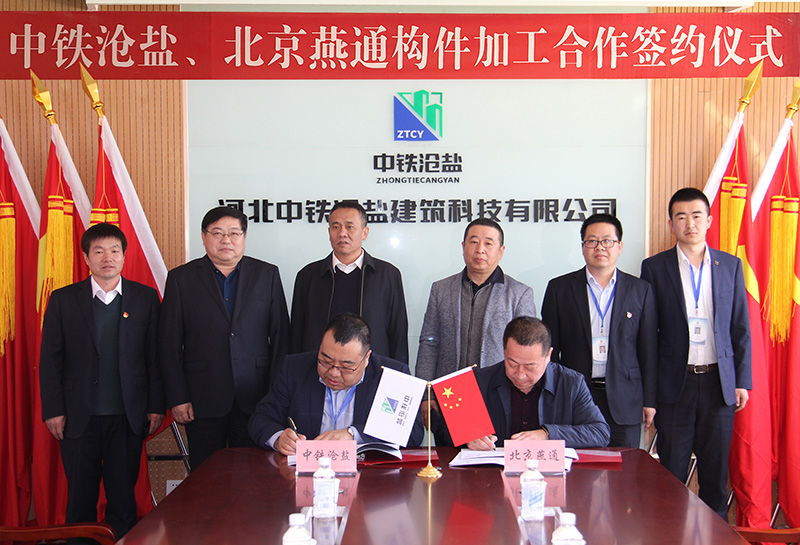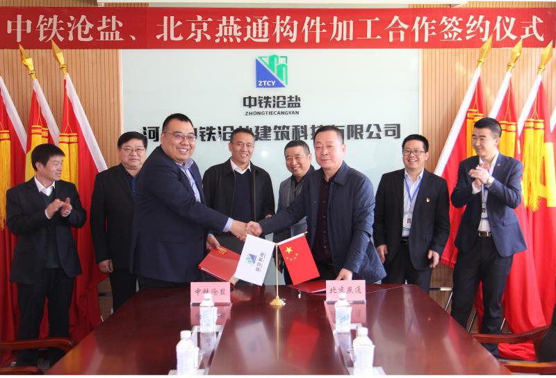 3月12日上午,河北中鐵滄鹽建筑科技有限公司與北京燕通構(gòu)件有限公司舉行構(gòu)件加工合作簽約儀式。