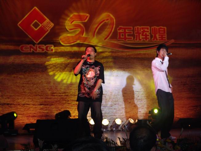 中鹽總公司副總經(jīng)理萬建軍(右)即興演唱